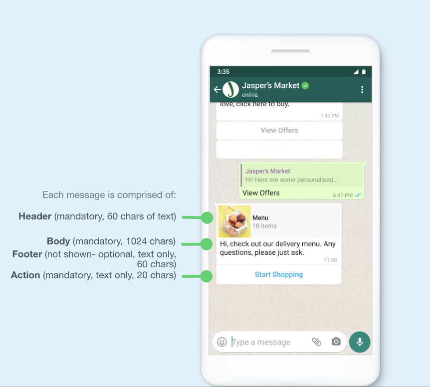 The WhatsApp Business API allows enterprises to send multiple types of notification